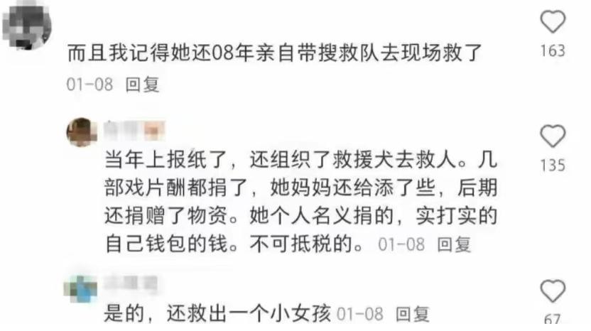 彼时刚出道且片酬不高的她捐赠了100万元。