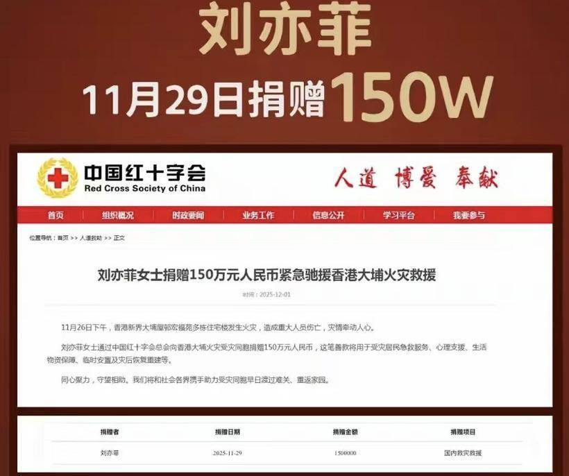 而刘亦菲的150万善款,直至中国红十字会公示名单被网友“扒”出才悄然显露。